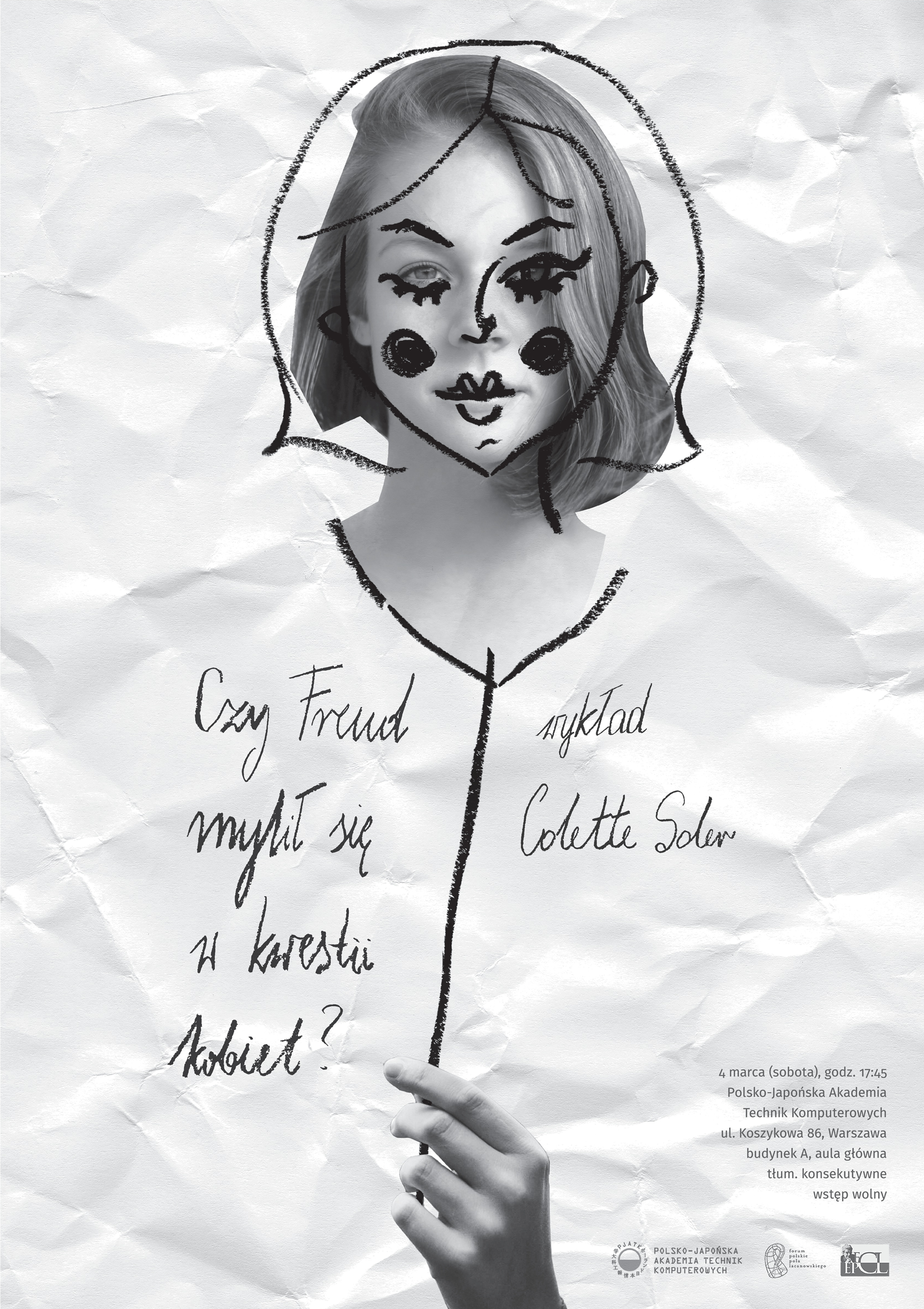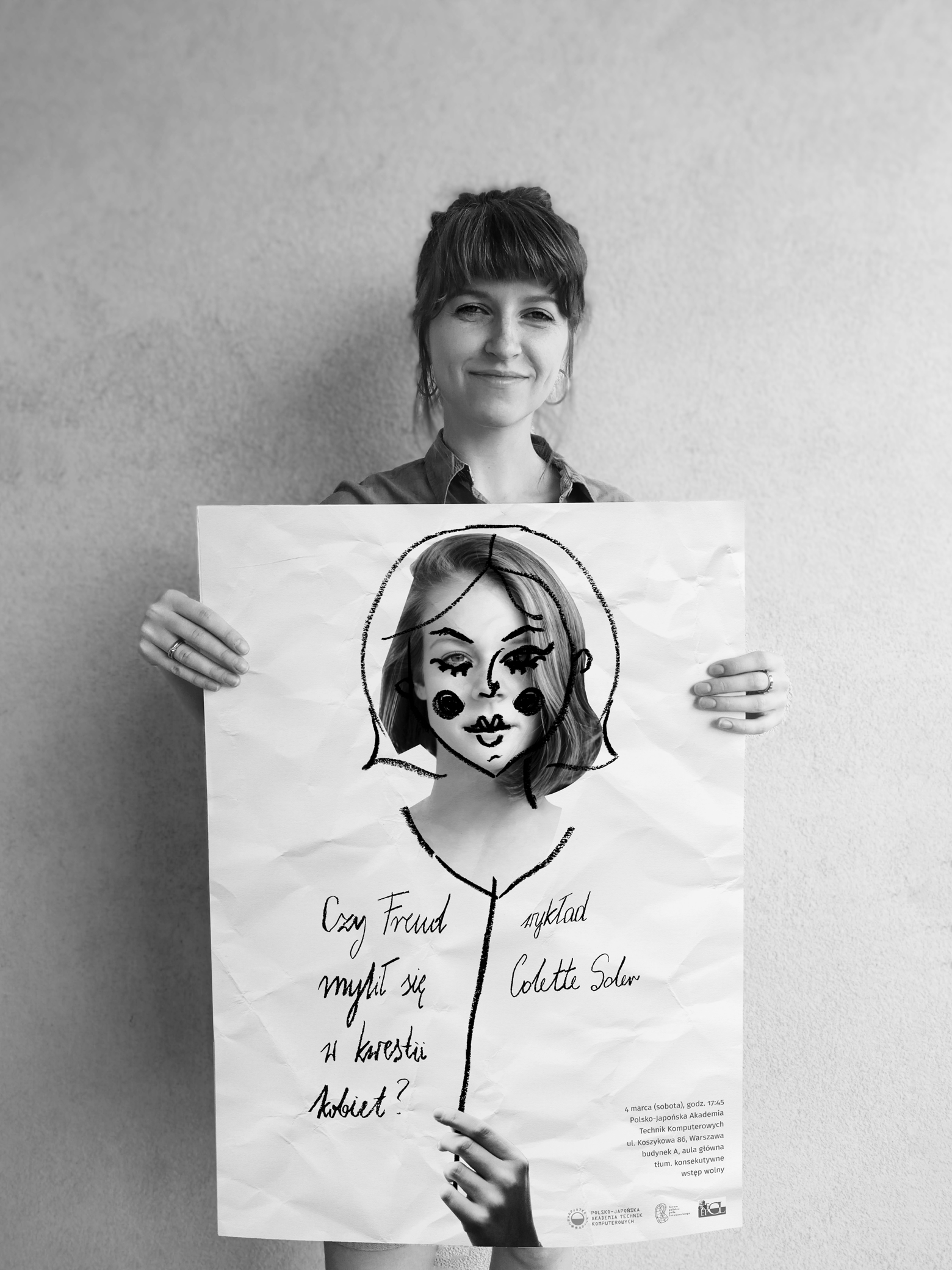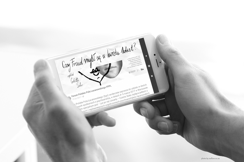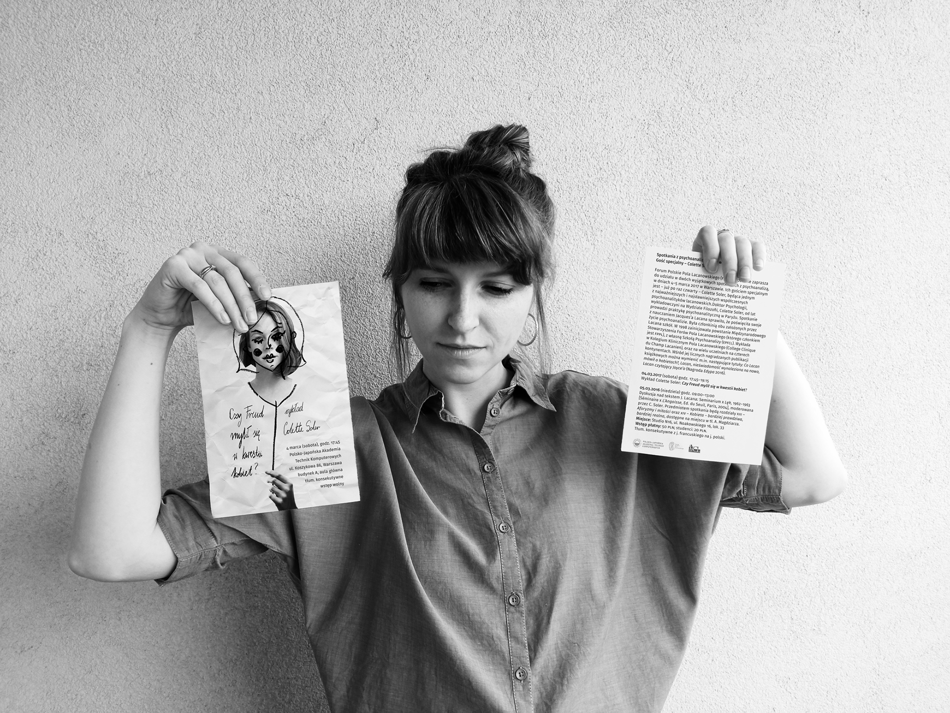 Stworzenie materiałów promujących wykład prof. Colette Soler pt. "Czy Freud mylił się w kwestii kobiet". Kluczowe było znalezienie estetyki, która pasowałaby najlepiej do skomplikowanej i często poetyckiej dziedziny, jaką jest psychoanaliza.