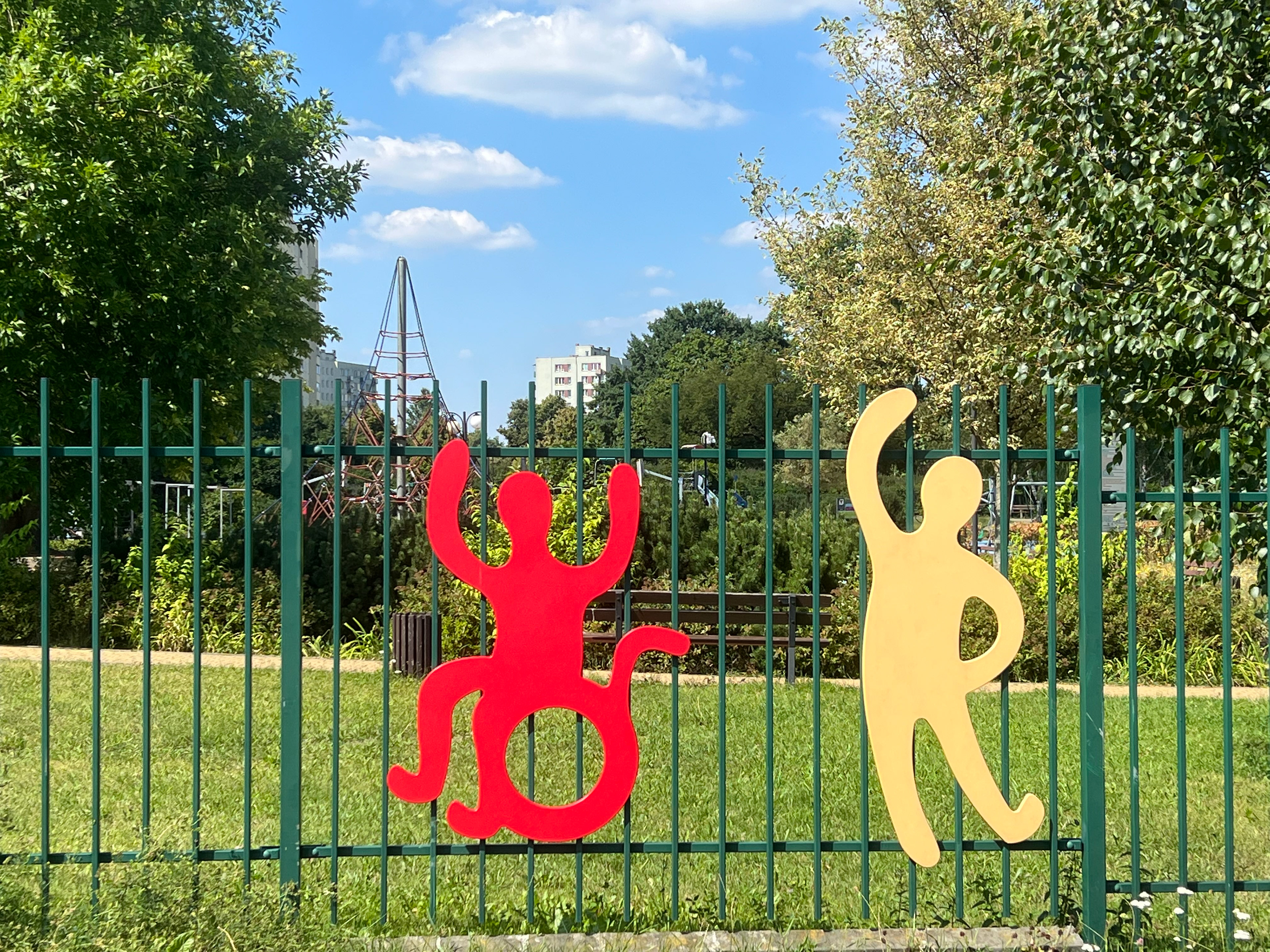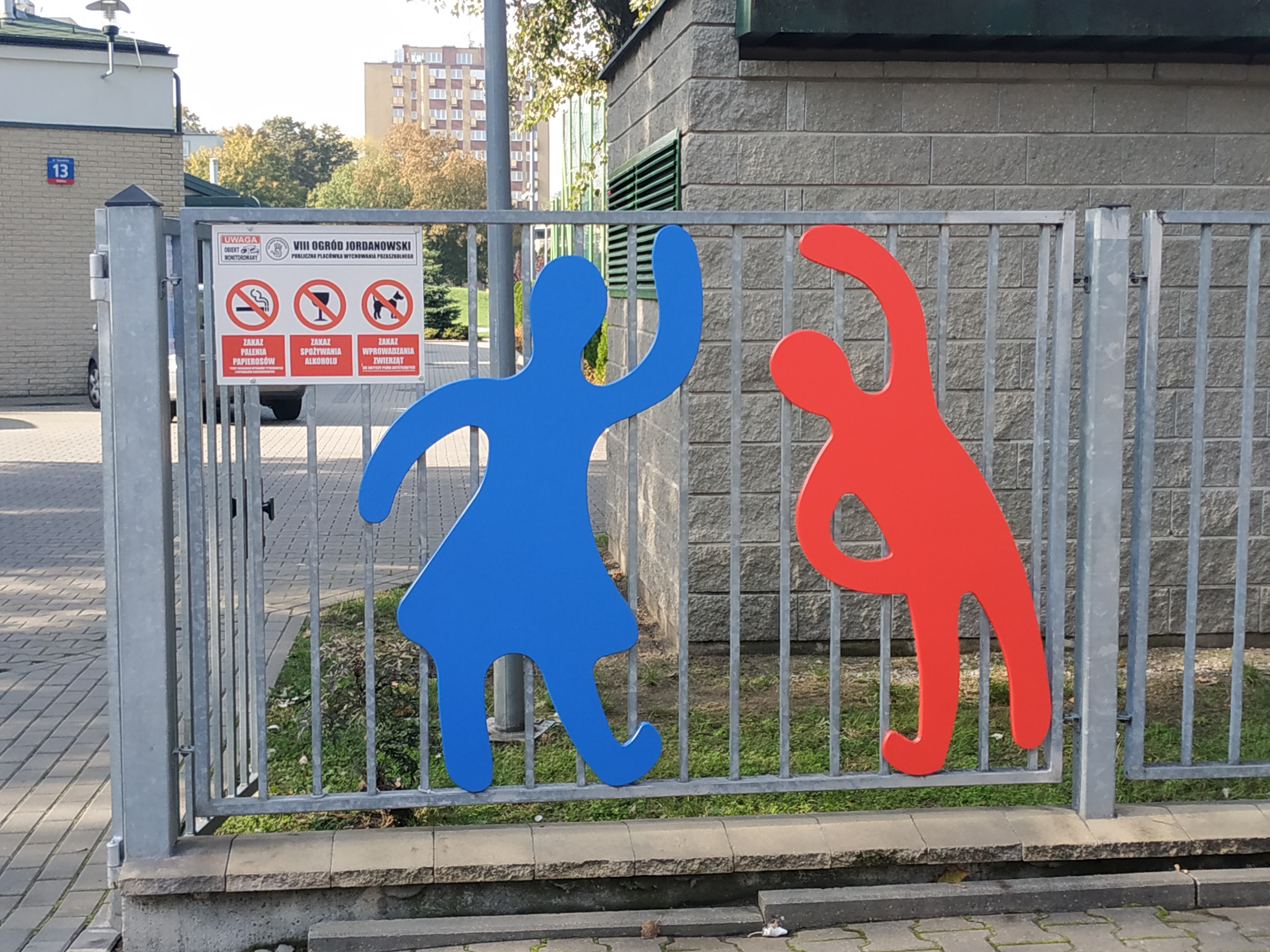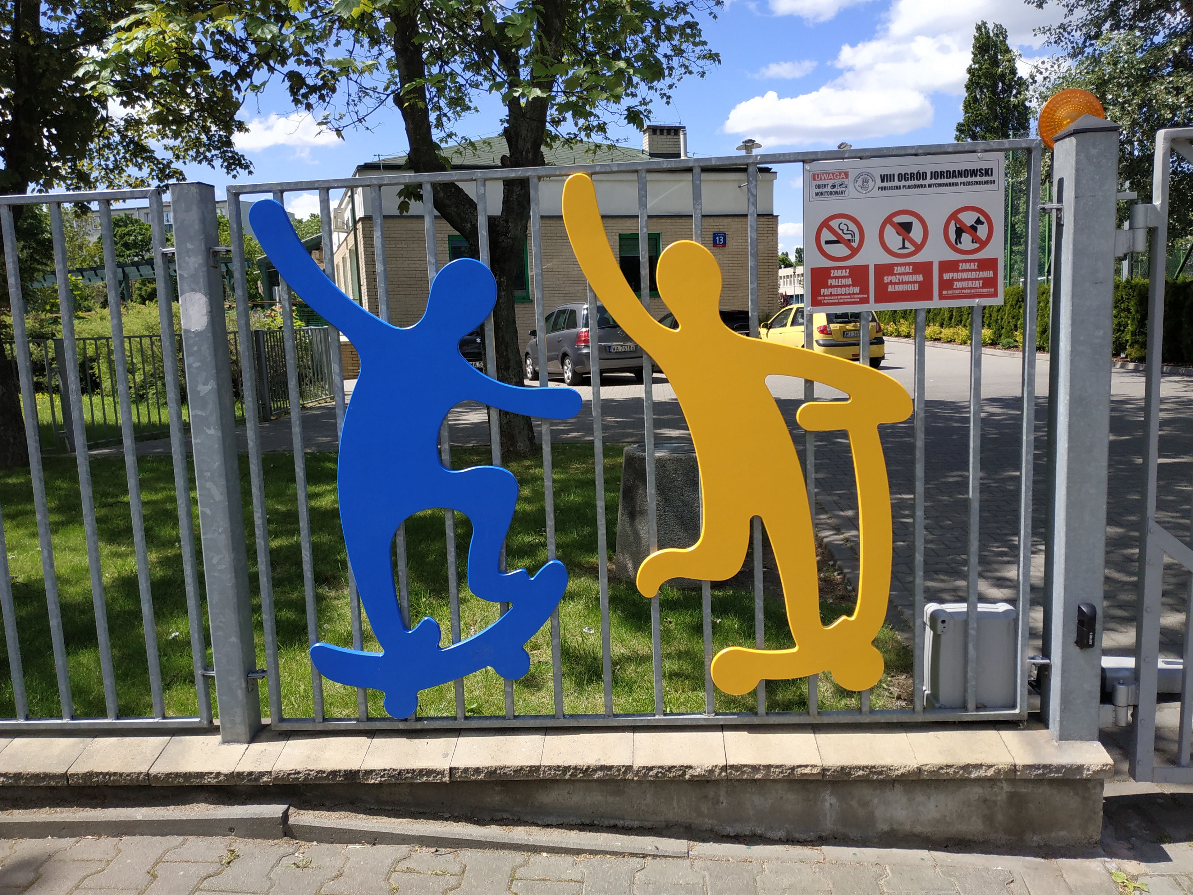 Te rysunki oraz późniejsze spotkania z lokalną społecznością i rozmowy z pracownikami VIII Ogrodu Jordanowskiego stały się punktem wyjścia dla szkiców ludzików w różnych pozach. Przez długi czas były one dopracowywane zarówno pod kątem formy, jak i koloru. Po dokładnym rozrysowaniu ostatecznej wersji projektu sprawdziliśmy w jaki sposób będą się prezentowały na ogrodzeniu, a następnie zleciliśmy wykonanie projektu zewnętrznej firmie specjalizującej się w budowie placów zabaw, sal zabaw itd.