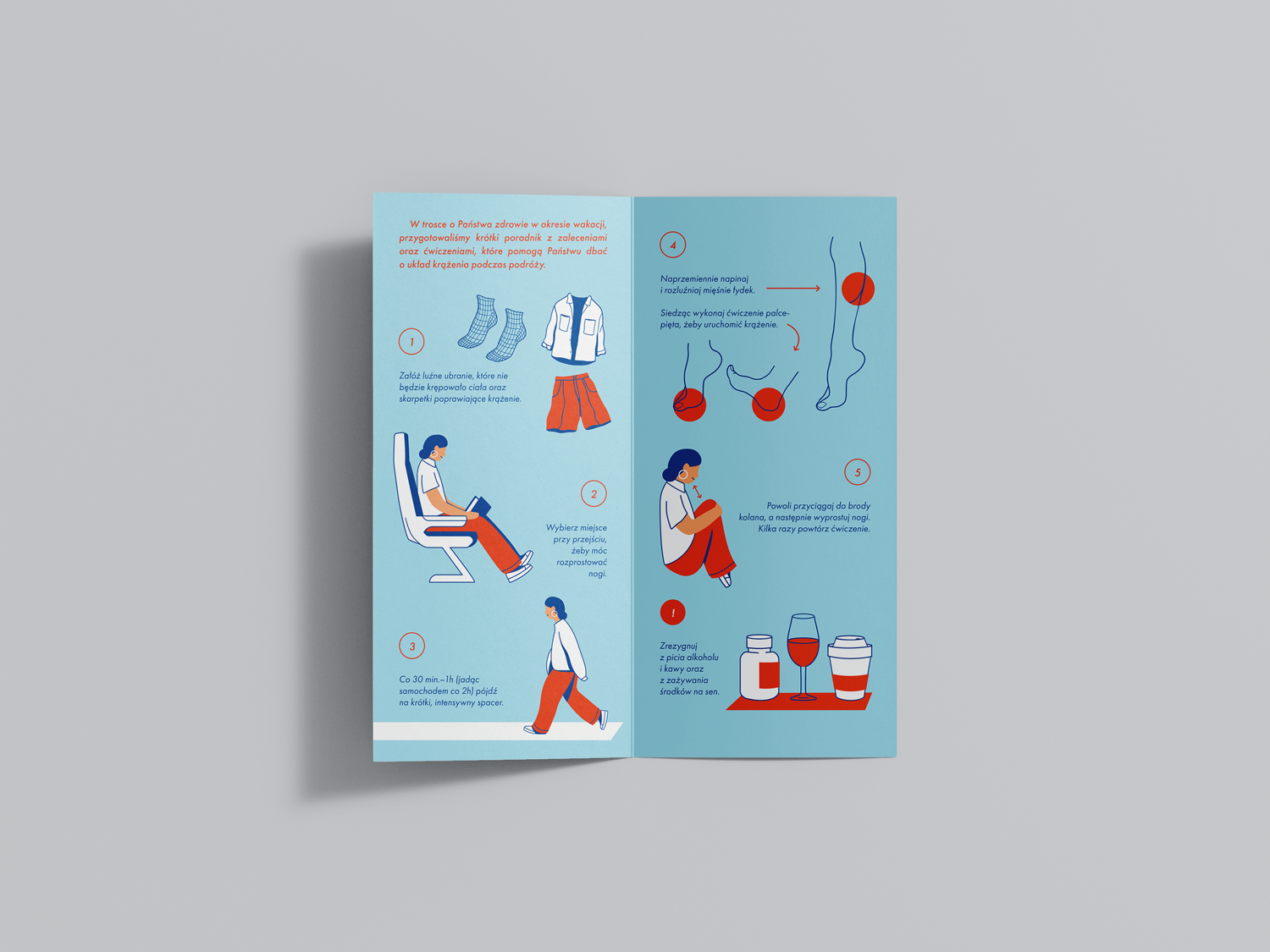 Ulotka ma zachęcać pacjentów wybierających się na wakacje do dbania również w tym czasie o swoje krążenie, zwłaszcza w trakcie podróży, gdy ciało jest ułożone niewygodnie, i nie ma zbyt wielu okazji do rozprostowania kości.