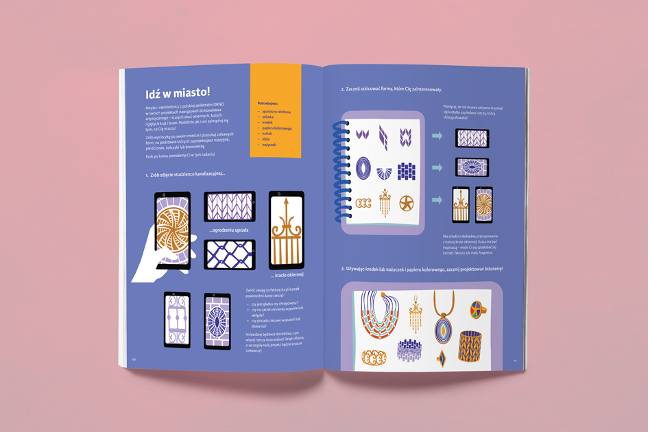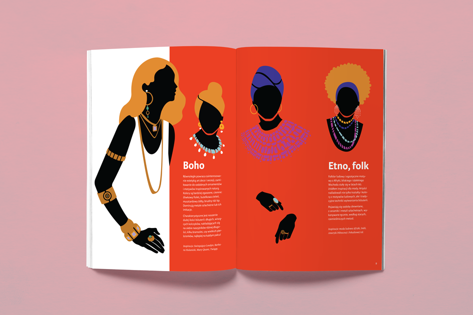 Książka zawiera 5 działów o akcesoriach modowych, z których każdy zaczyna się od historii poszczególnych trendów zilustrowanych przykładami. W dalszej części każdego z działów czytelnik dostaje różne zadania do wykonania, w których krok po kroku poznaje proces projektowania oraz różne techniki plastyczne.