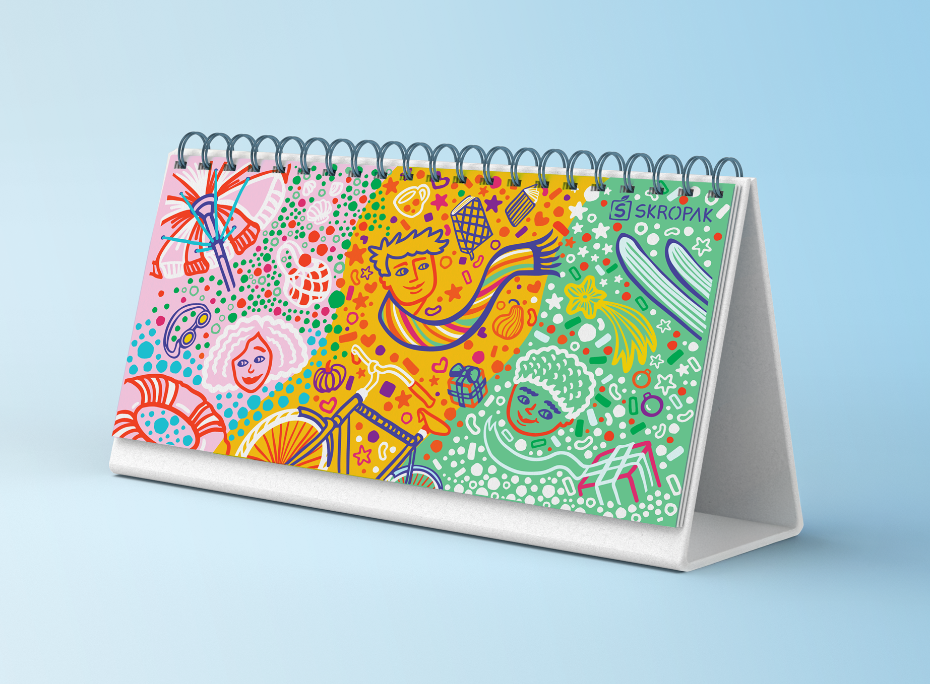 Od pierwszej chwili, w której zostałam poproszona przez firmę GFX Complex Solutions o zaprojektowanie przedmiotów do paczki prezentowej, w mojej głowie pojawiła się wizja kompozycji z ekologicznych wypełniaczy – „chrupek” (nie do jedzenia!), które luźno otaczałyby produkty. Chrupki w soczystych kolorach, ułożone absolutnie nieprzypadkowo, zaczęły tworzyć dynamiczne wzory.