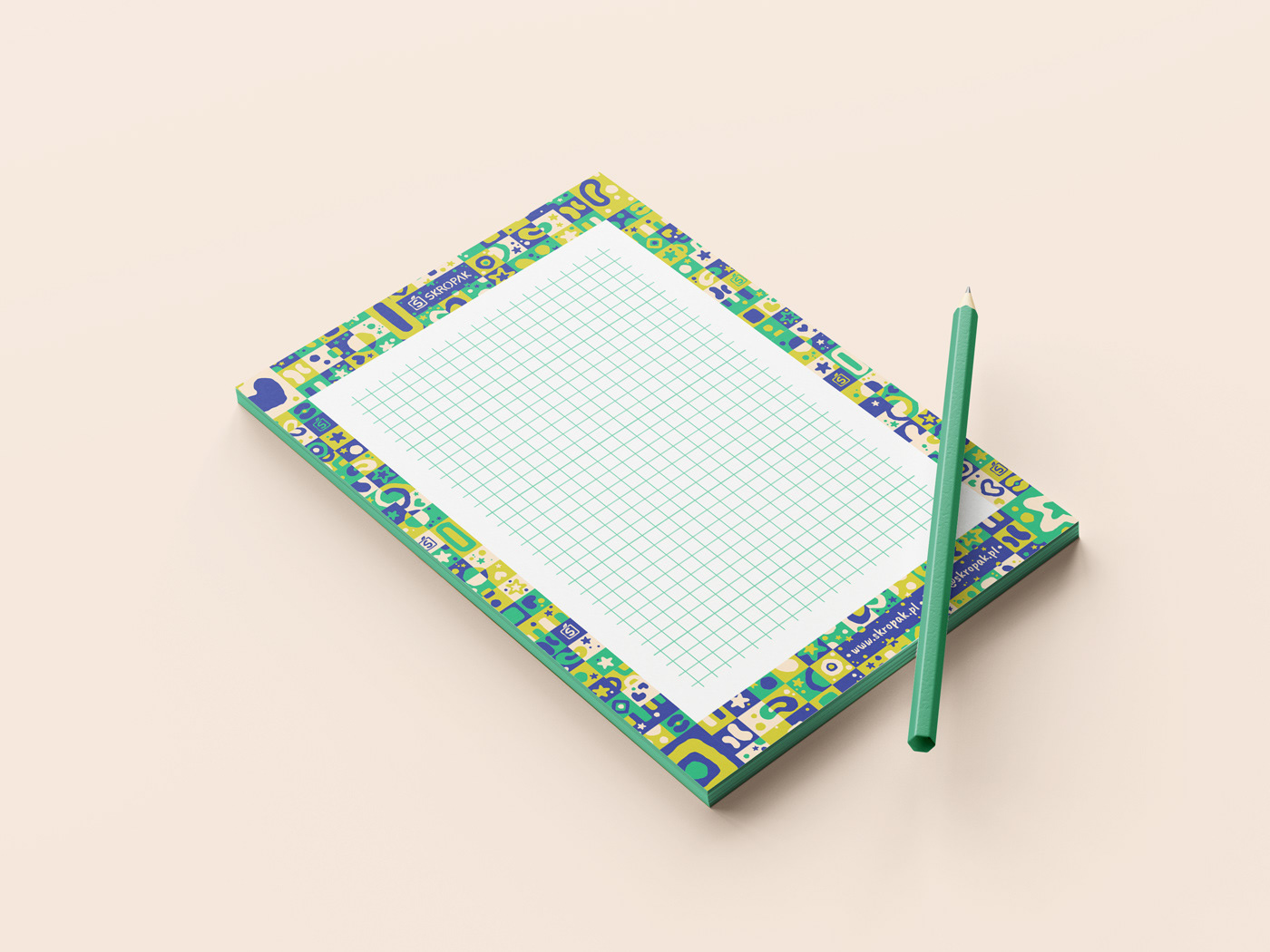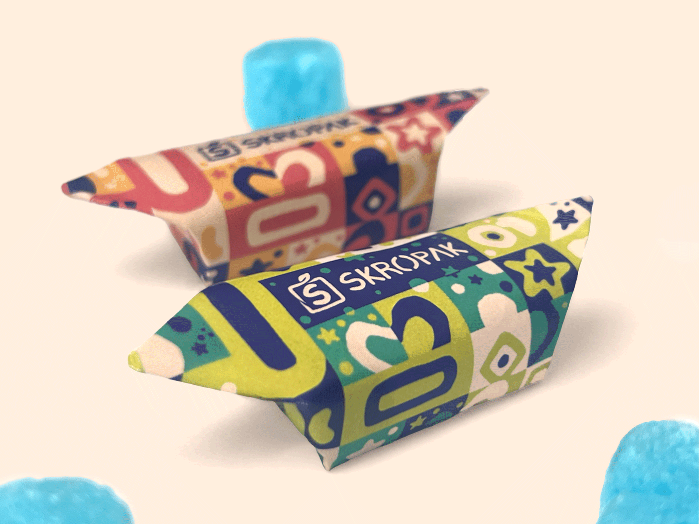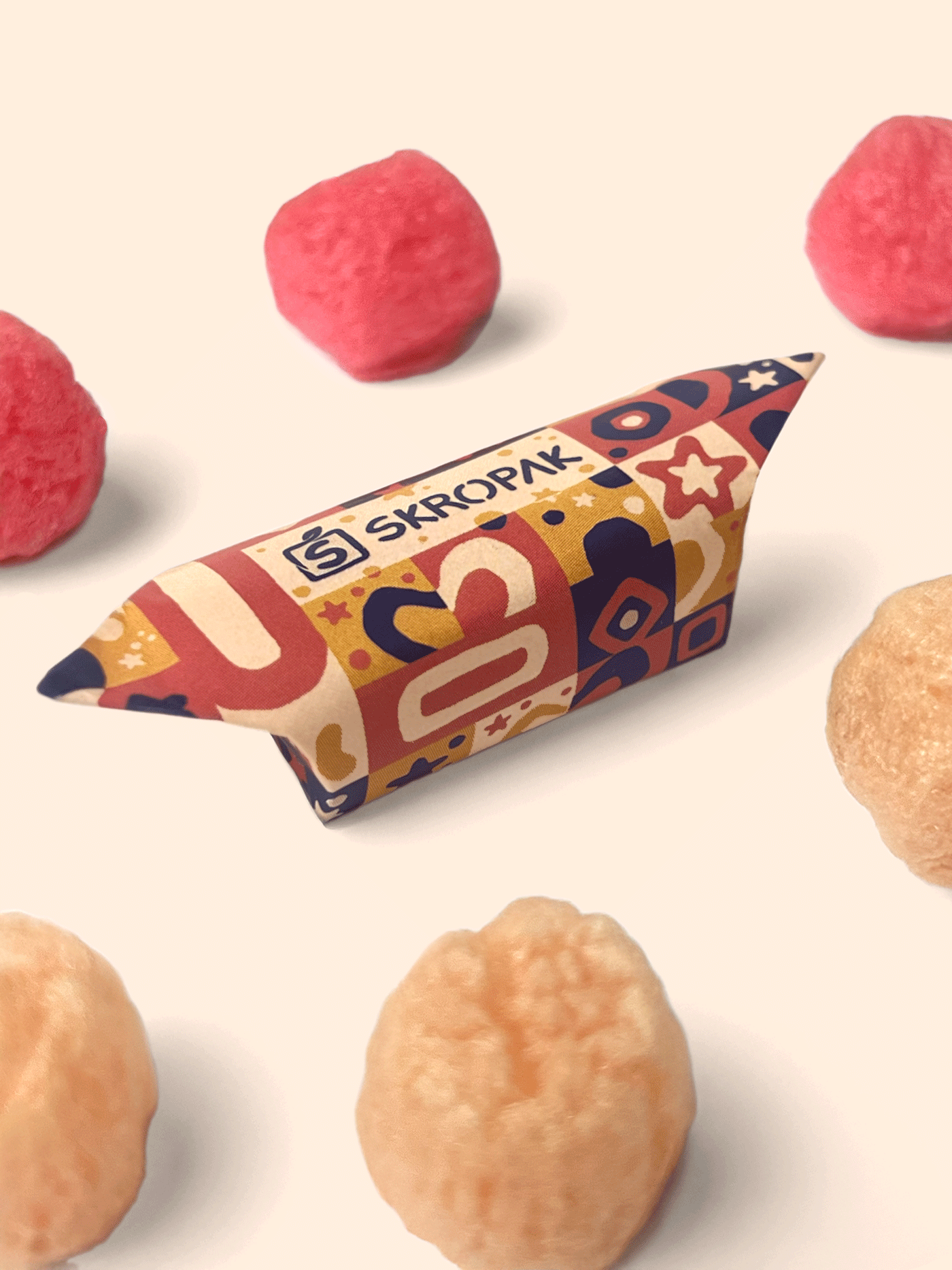 Od pierwszej chwili, w której zostałam poproszona przez firmę GFX Complex Solutions o zaprojektowanie przedmiotów do paczki prezentowej, w mojej głowie pojawiła się wizja kompozycji z ekologicznych wypełniaczy – „chrupek” (nie do jedzenia!), które luźno otaczałyby produkty. Chrupki w soczystych kolorach, ułożone absolutnie nieprzypadkowo, zaczęły tworzyć dynamiczne wzory.