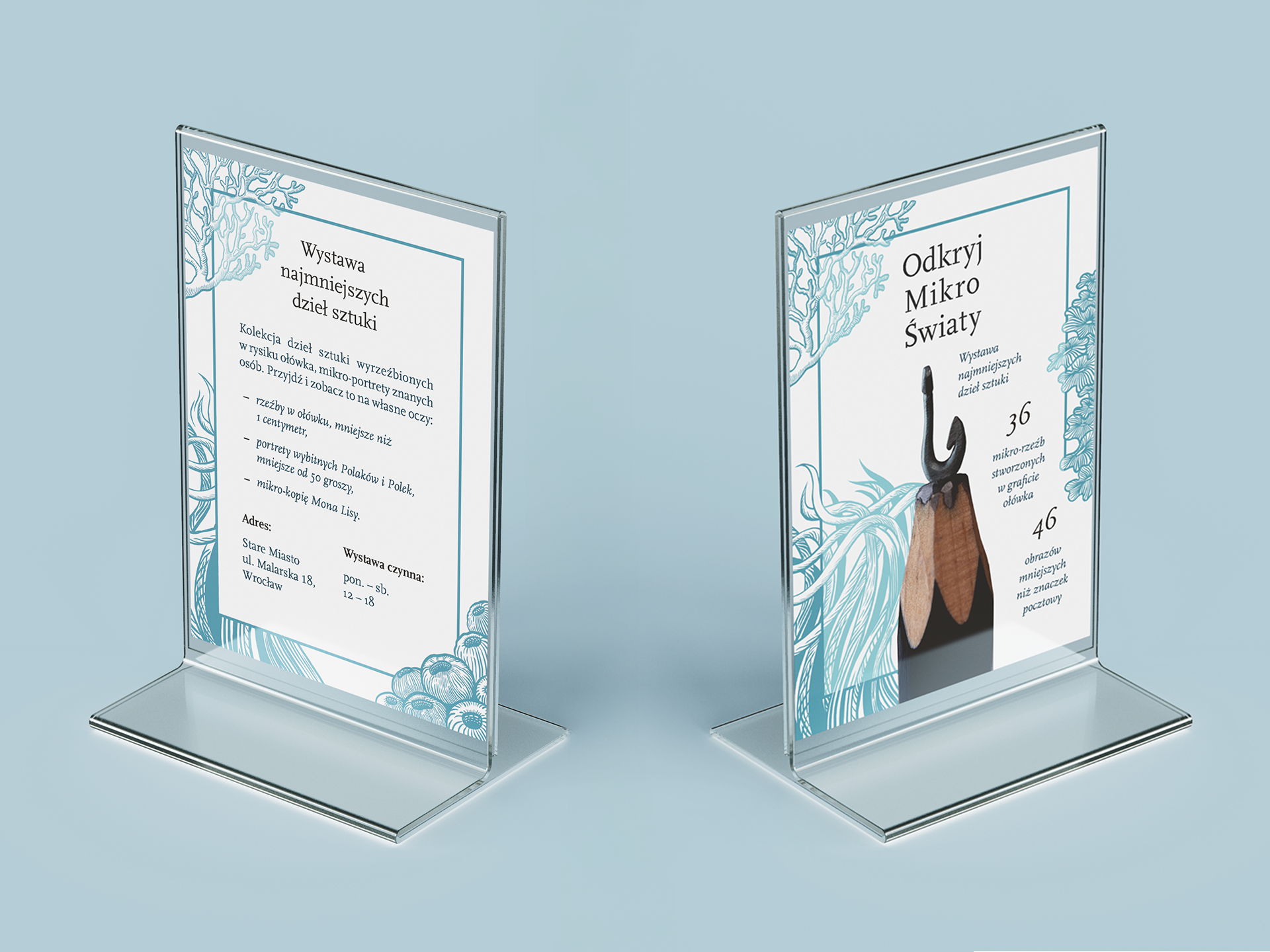 Projekt został zrealizowany w celu promocji Wystawy Mikro Sztuki, zorganizowanej w kameralnej przestrzeni jednej z kamienic przy wrocławskim rynku. Na wystawie prezentowane są rzeźby wykonane w graficie ołówka oraz obrazy malowane na powierzchni wielkości monety dwuzłotowej.